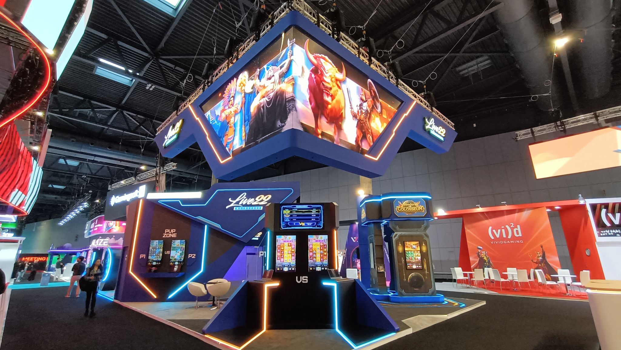 From afar, Live22’s booth immediately caught the eye. Framed by striking digital displays and dynamic lighting, the space radiated a modern, high-impact presence that reflected the fast-paced nature of its games. Vibrant visuals looped seamlessly across large screens, drawing visitors into Live22’s universe before they even stepped inside. The design struck a careful balance — futuristic without feeling cold, energetic without overwhelming — making it a natural gathering point on the show floor.