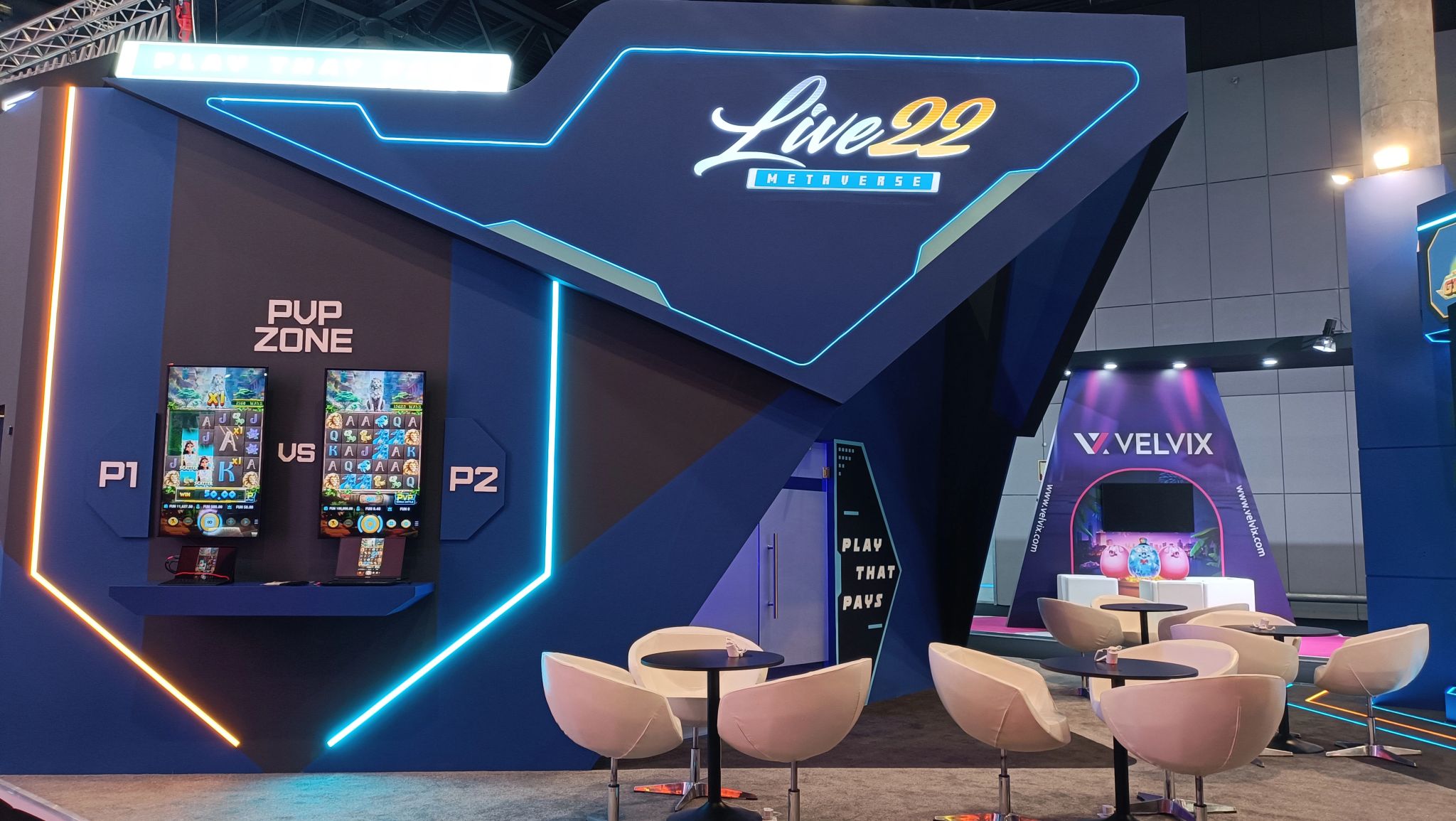 What truly set the booth apart was how thoughtfully it blended form and function. Every design element served a purpose — from the strategic placement of screens that showcased gameplay at just the right angle, to the lighting that subtly guided attention without distraction. The space felt alive, constantly in motion, mirroring the competitive spirit and creative drive that define Live22’s approach to iGaming.